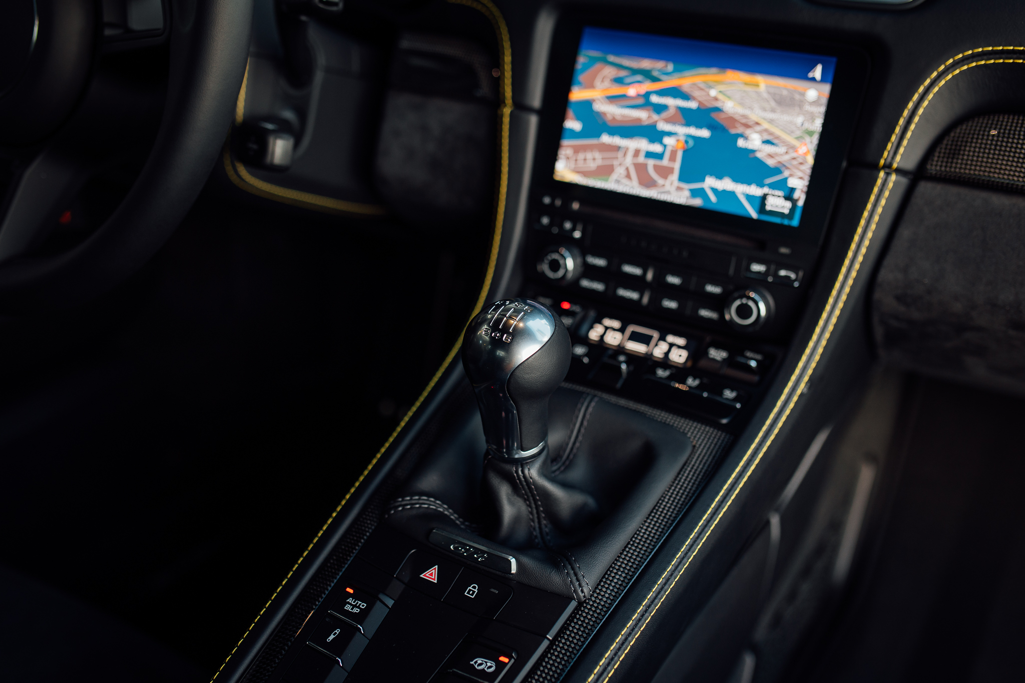Factory-fitted equipment includes rear parking assistance, automatic LED headlights with Porsche Dynamic Light System Plus (PDLS+), carbon-fibre bucket seats, dual-zone climate control, a switchable sports exhaust and dampers, and Porsche Communication Management (PCM) with satellite navigation and Apple CarPlay compatibility.